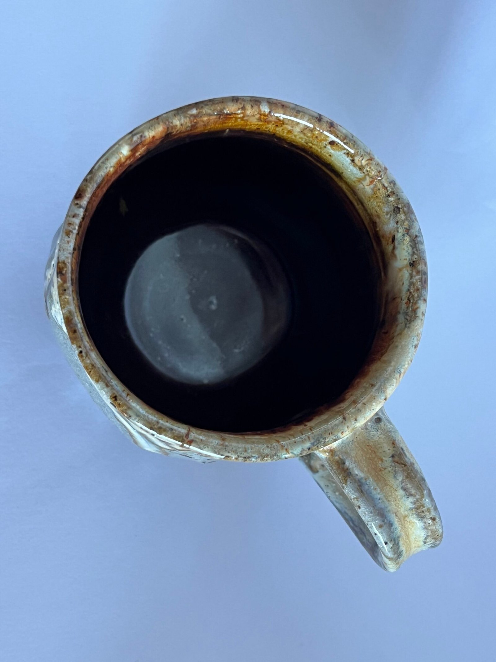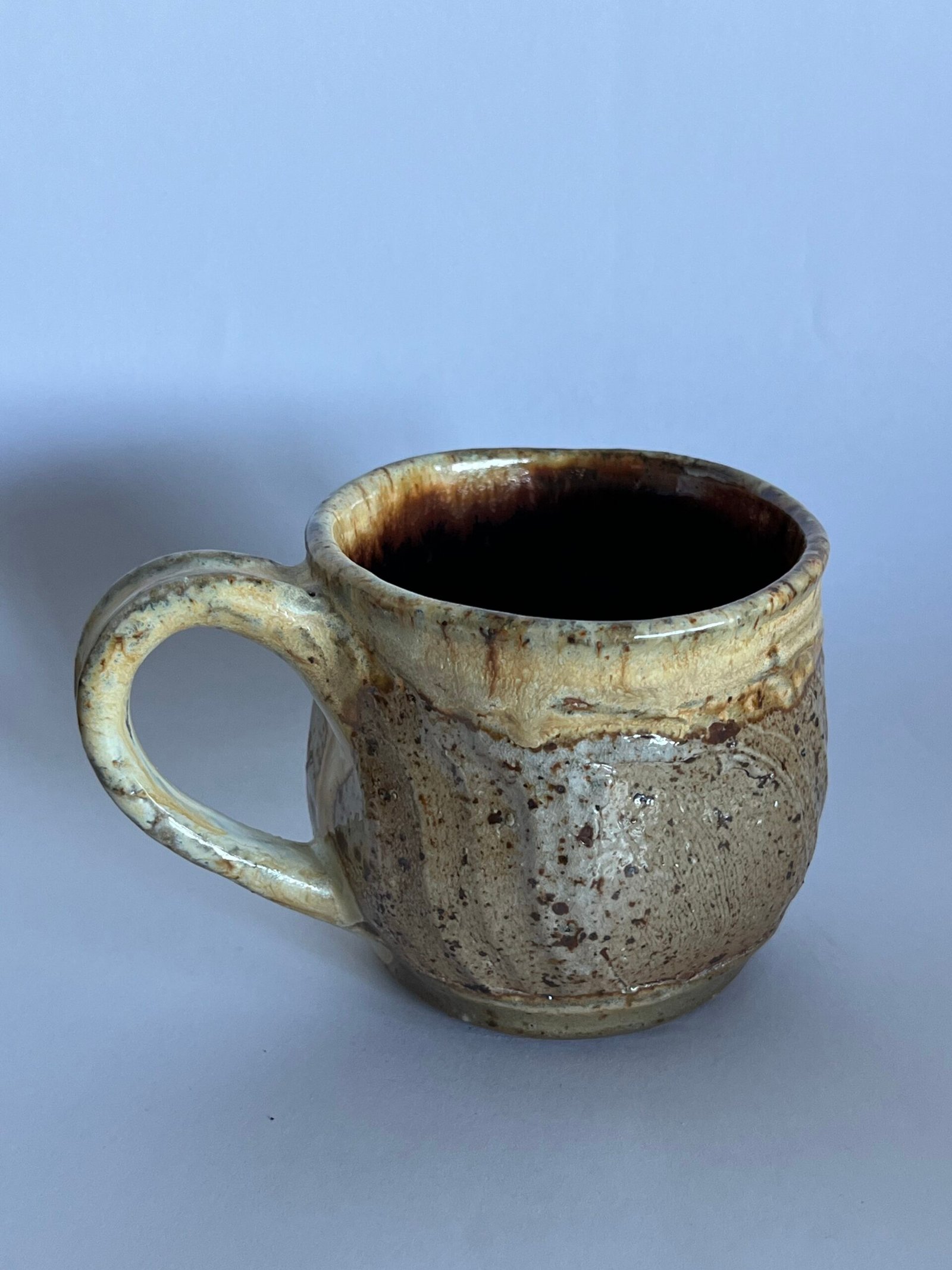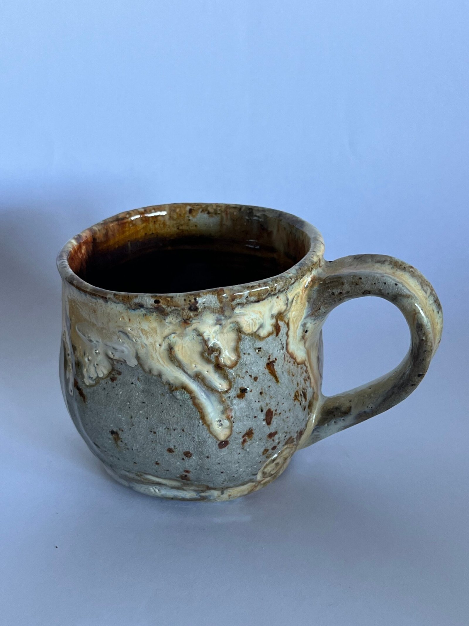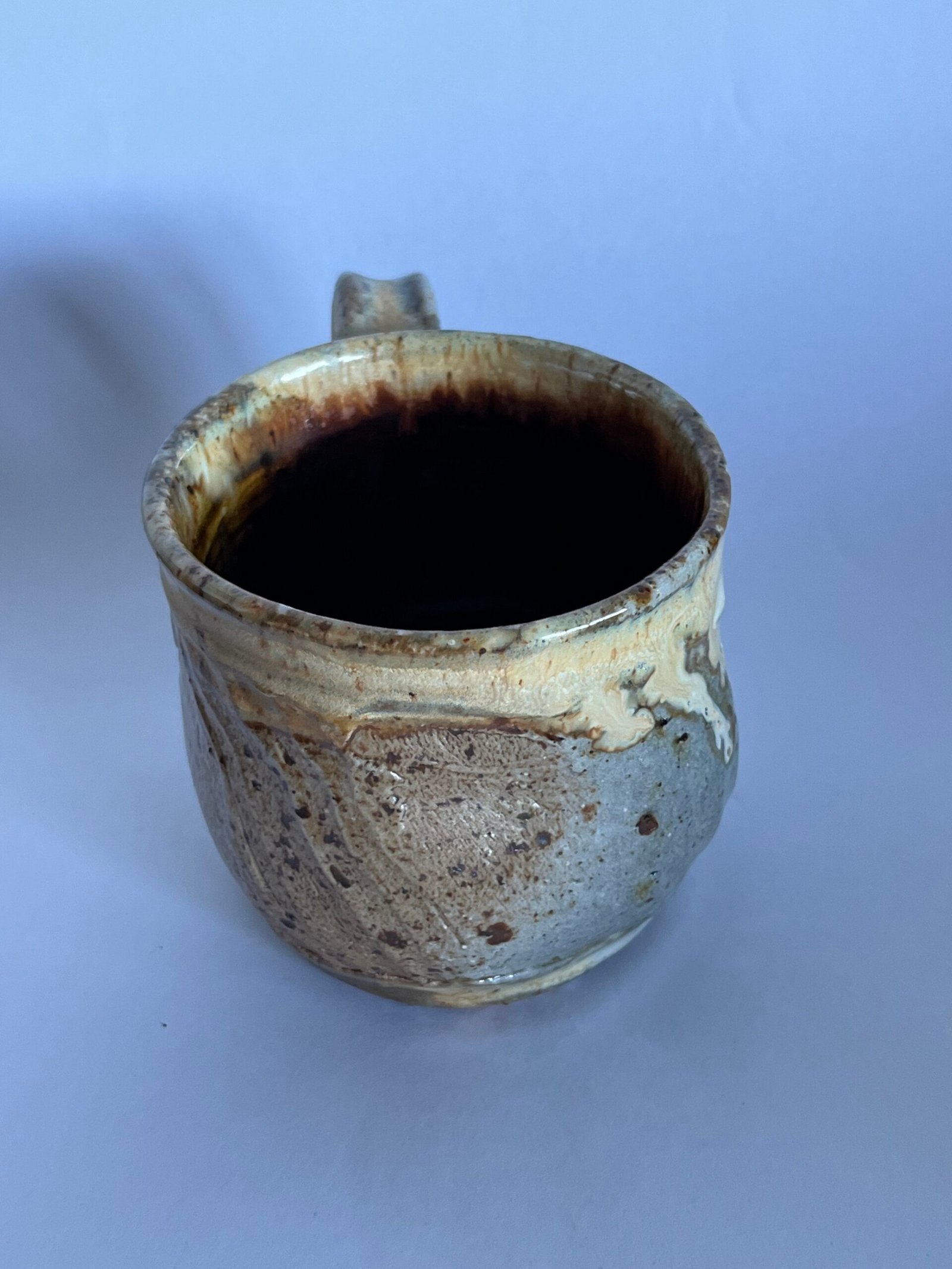 Like all my mugs it is food safe and dishwasher safe. This mug is 7cm high and holds 200mL. Enjoy sipping your favourite beverage from this wee one, and cradling the soda fired beauty.