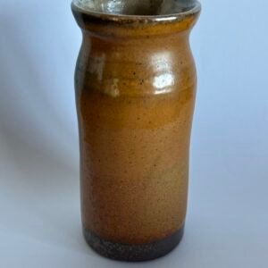 Vase made with New Zealand clay(Macs Mud Buff Stoneware) with my original batch of soda iridescent flashing slip. This vase was soda fired in reduction to cone 10. It has a dramatic shoulder/side where it was hit directly with soda, and a quiet side which is more matte. It is 14cm tall, and perfect for…